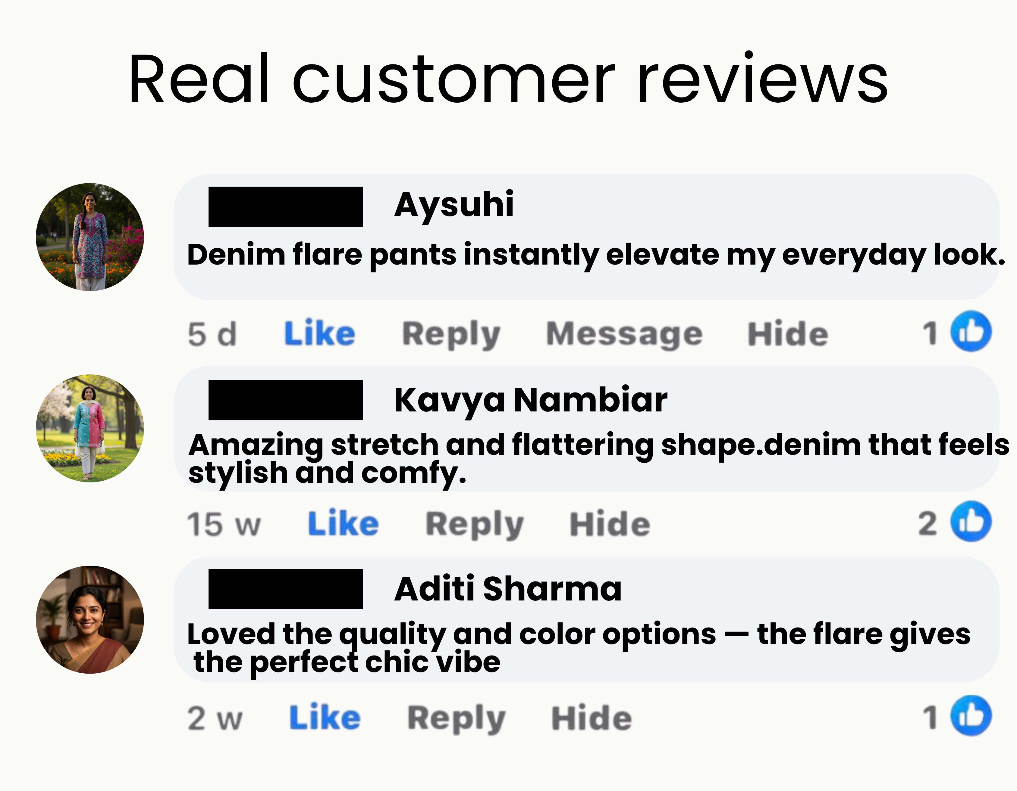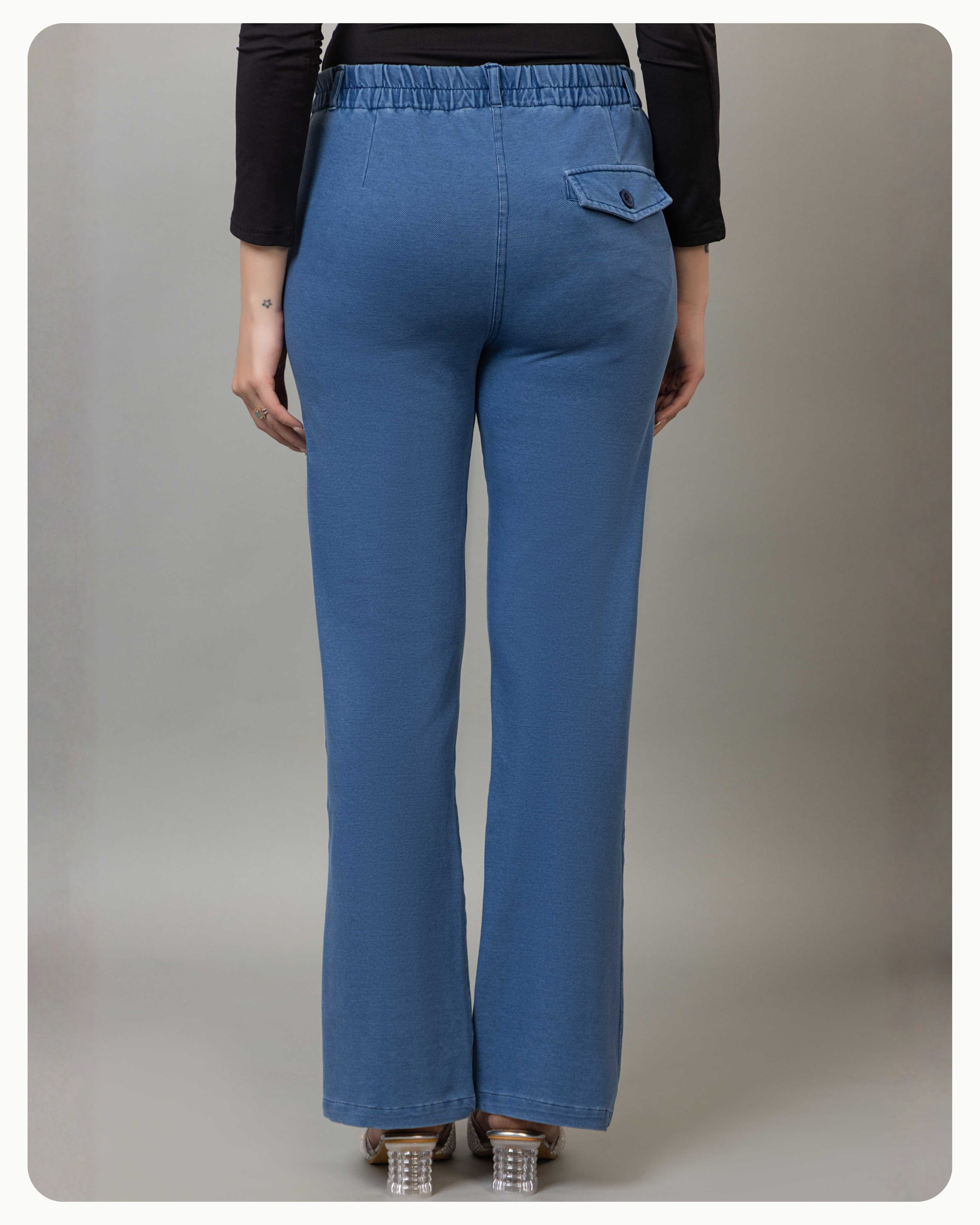 Blue denim bootcut flare pants by Mlada - Where style meets comforts! High-quality, trendy, and available in all sizes with free delivery and no cost COD. Elevate your wardrobe with these timeless, fancy women denim bootcut flare pants. Crafted in-house with ethical practices, these bootcut flare pants embody our commitment to quality, comfort, and enduring style. Join us in redefining fashion with a purpose. We also have generic women pants and plus size women pants too.