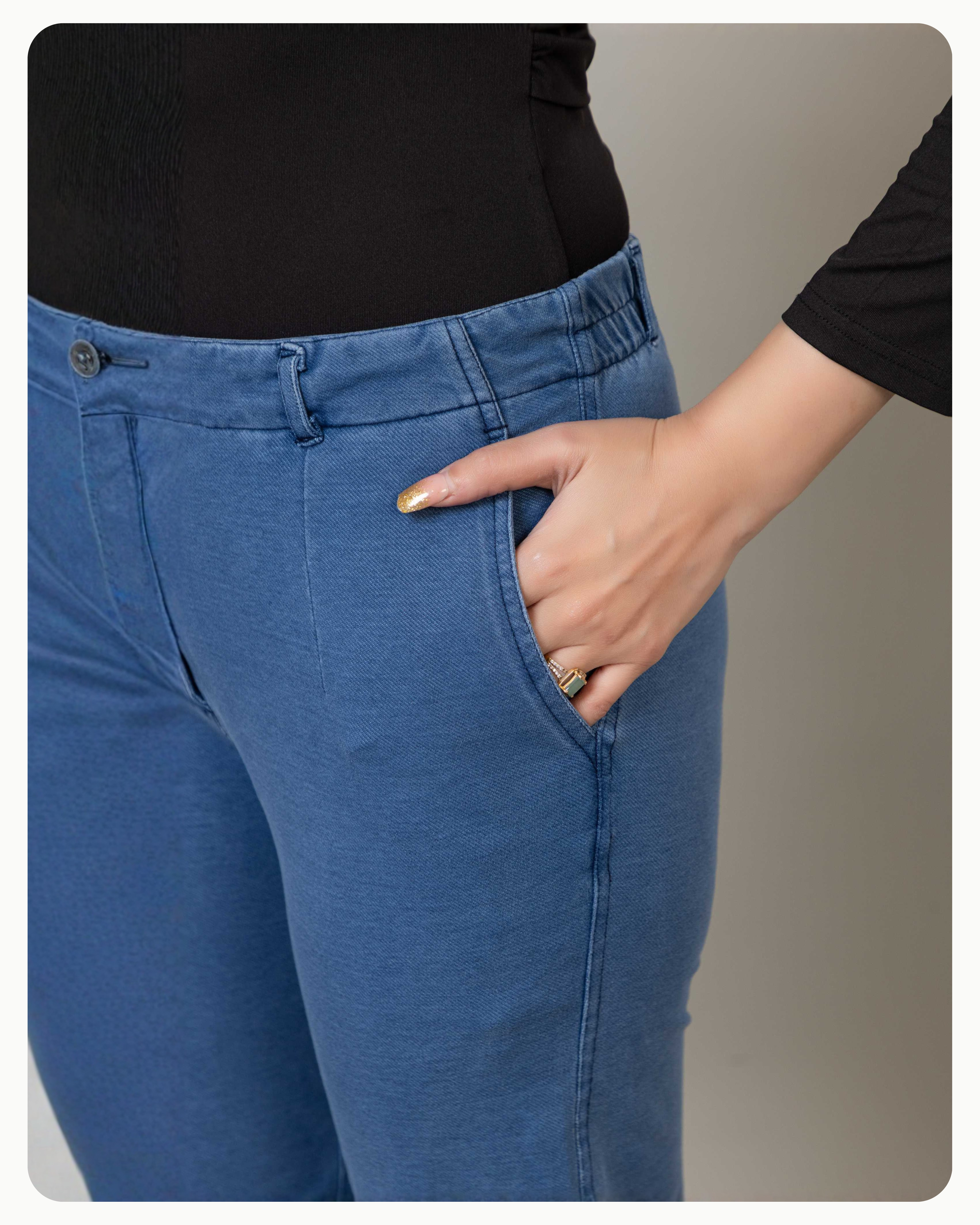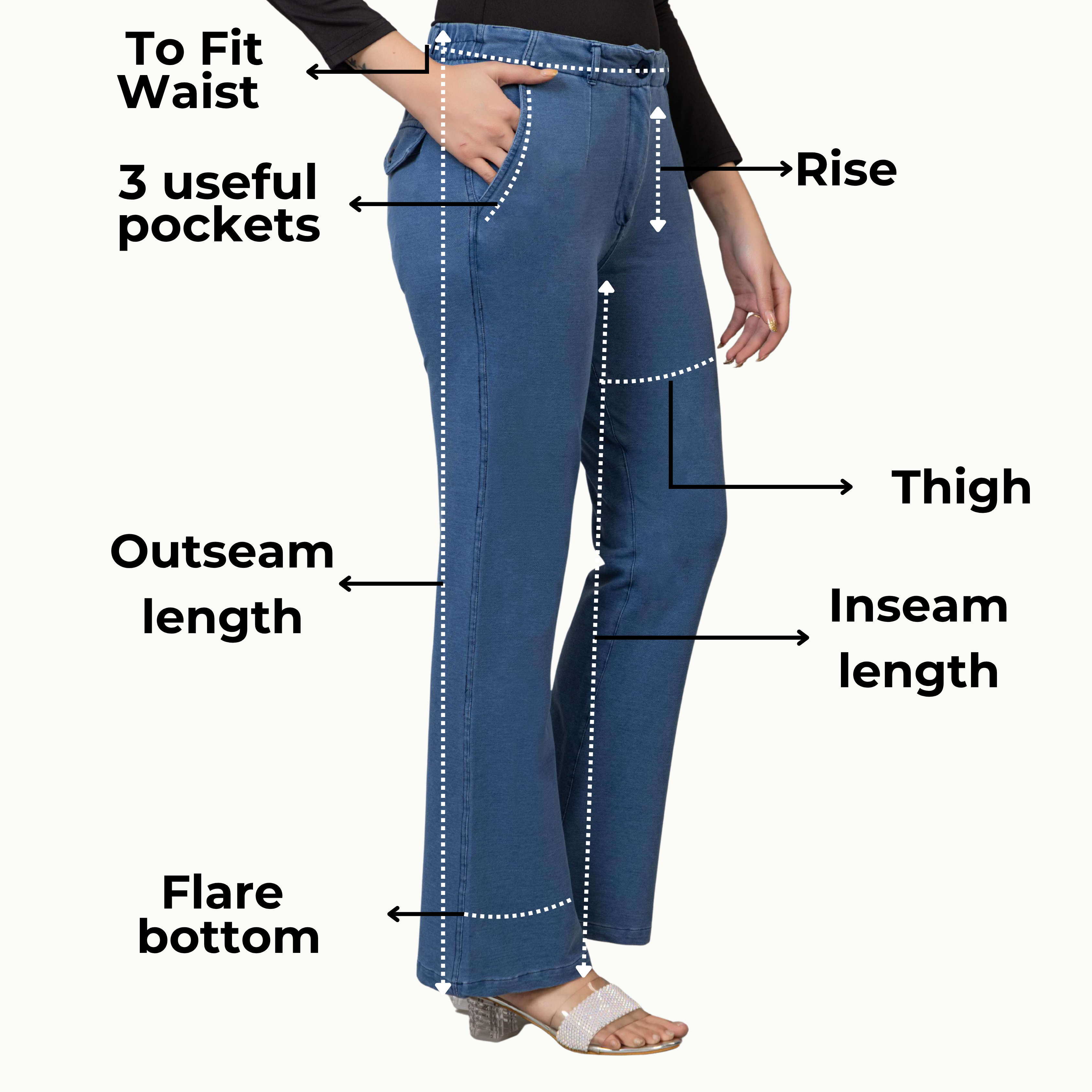 Elevate your style and comfort with our innovative denim flare pant featuring a cutting-edge 4-way stretch fabric with 10% lycra.