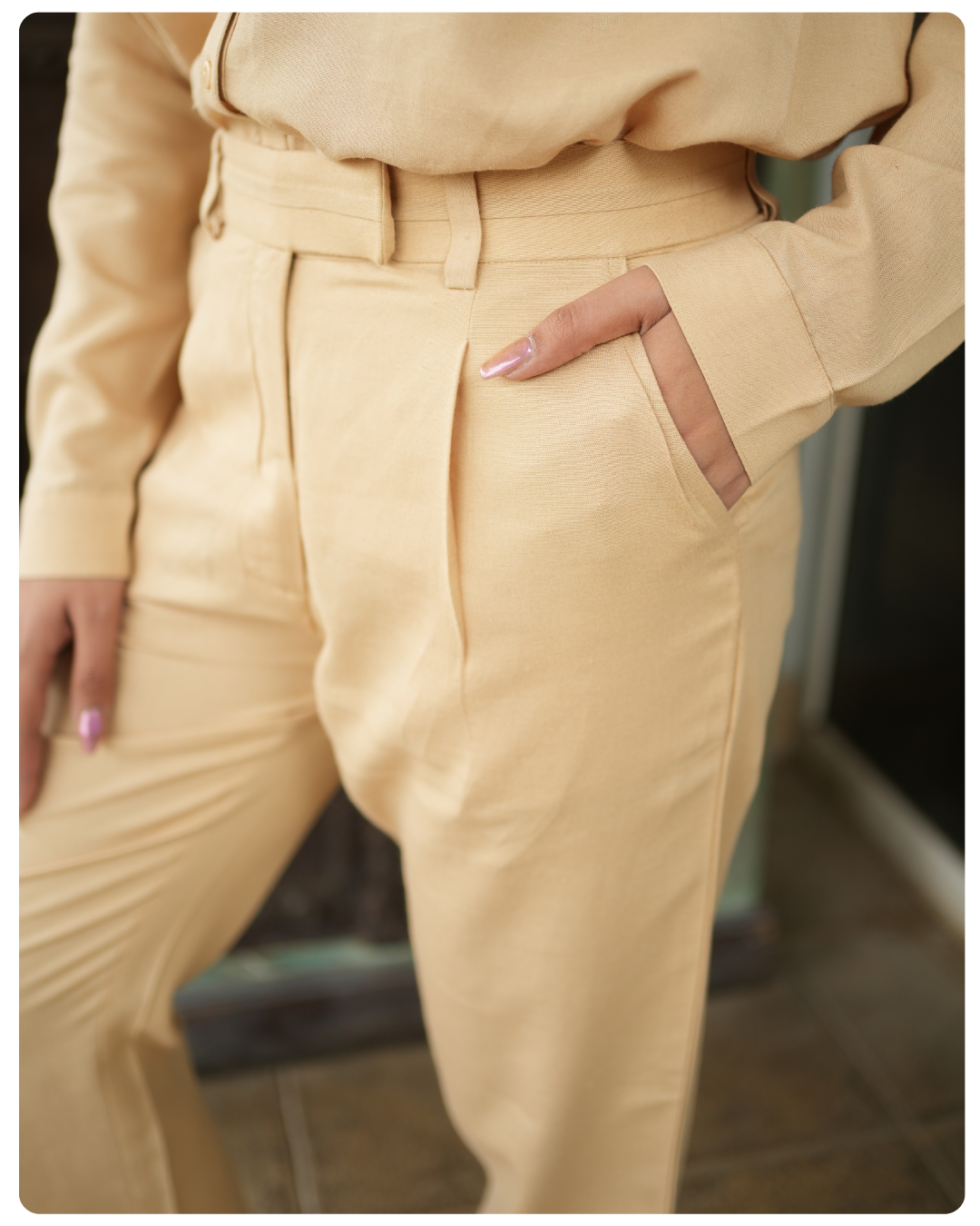 Beige linen straight-fit pencil pants & women's trousers by Mlada - Where style meets comforts! High-quality, trendy, and available in all sizes with free delivery and no cost COD. Elevate your wardrobe with these timeless, fancy women's linen straight pants. Crafted in-house with ethical practices, these cigarettes embody our commitment to quality, comfort, and enduring style. Join us in redefining fashion with a purpose. We also have cargo pants for women and plus-size women's pants too.