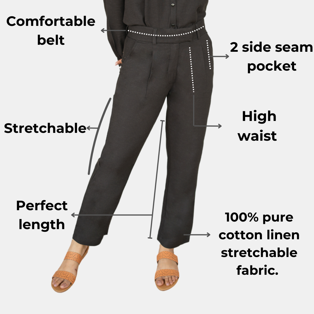 Elevate your style and comfort with our innovative pants featuring a cutting-edge 4-way stretch fabric blended with 100% cotton linen.