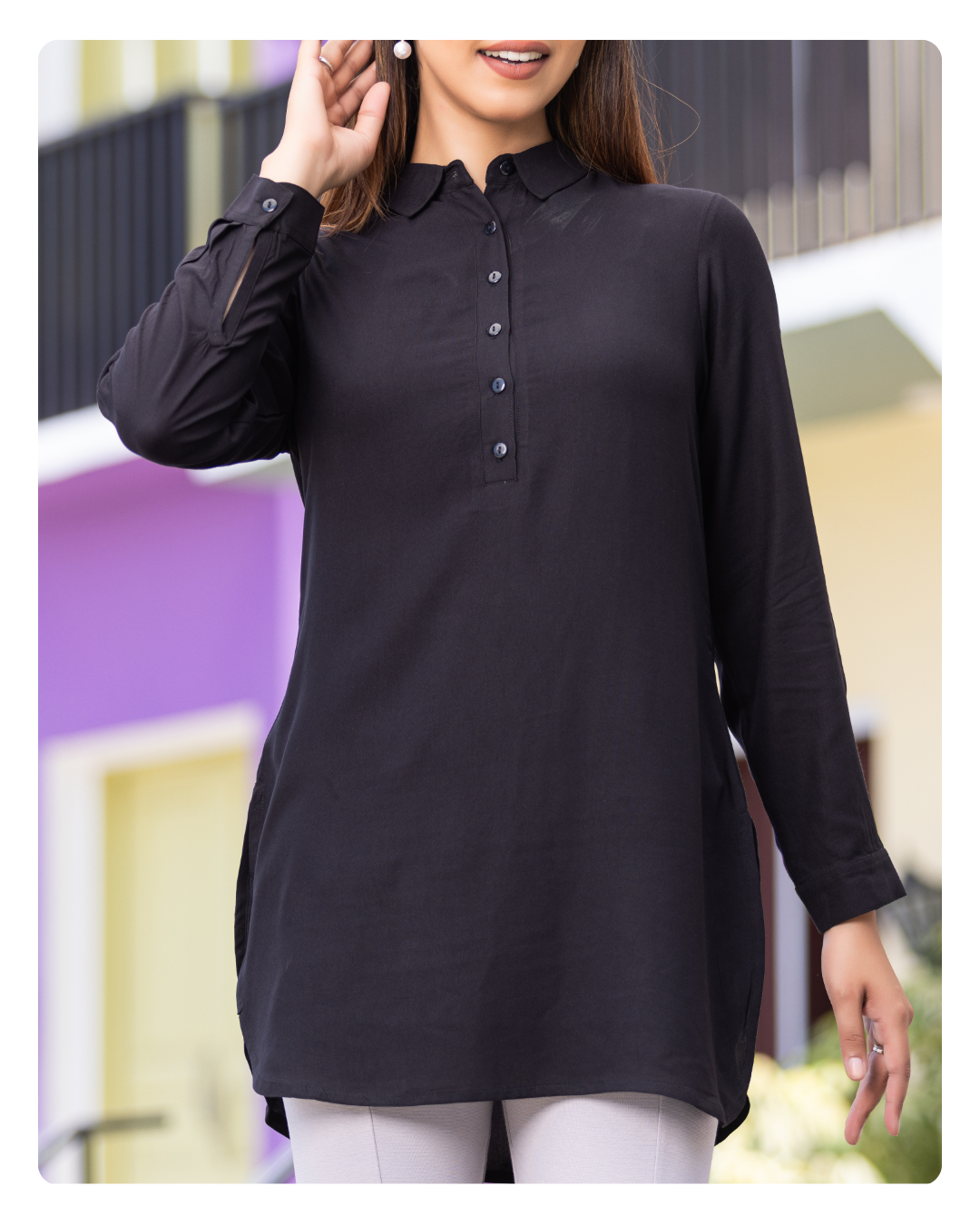 Black Longline shirt [ 100% Rayon, Liva Certified ]