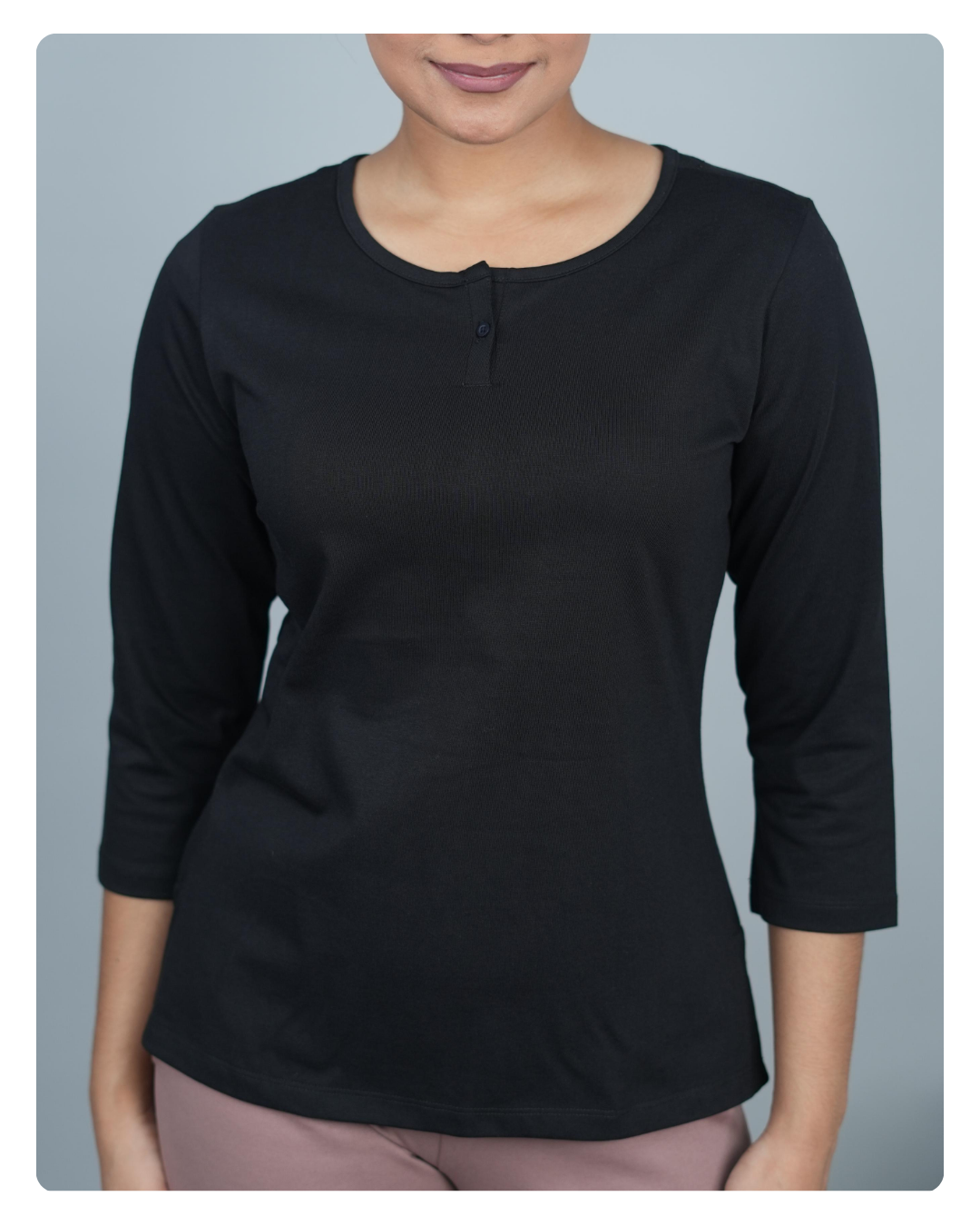 Charcoal Mélange Henley Tshirt [Non transparent 220 gsm thick ]