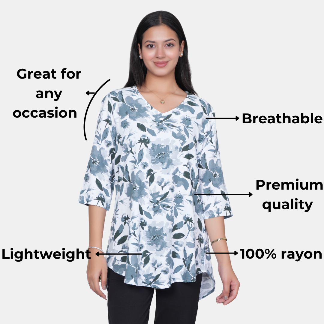Crafted from premium 100 % rayon, this top offers unparalleled comfort and a luxurious feel against your skin.