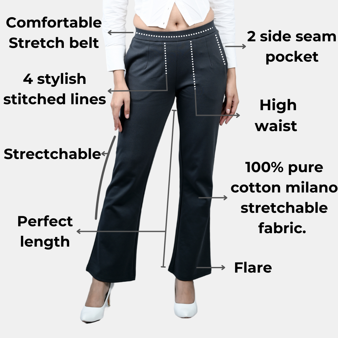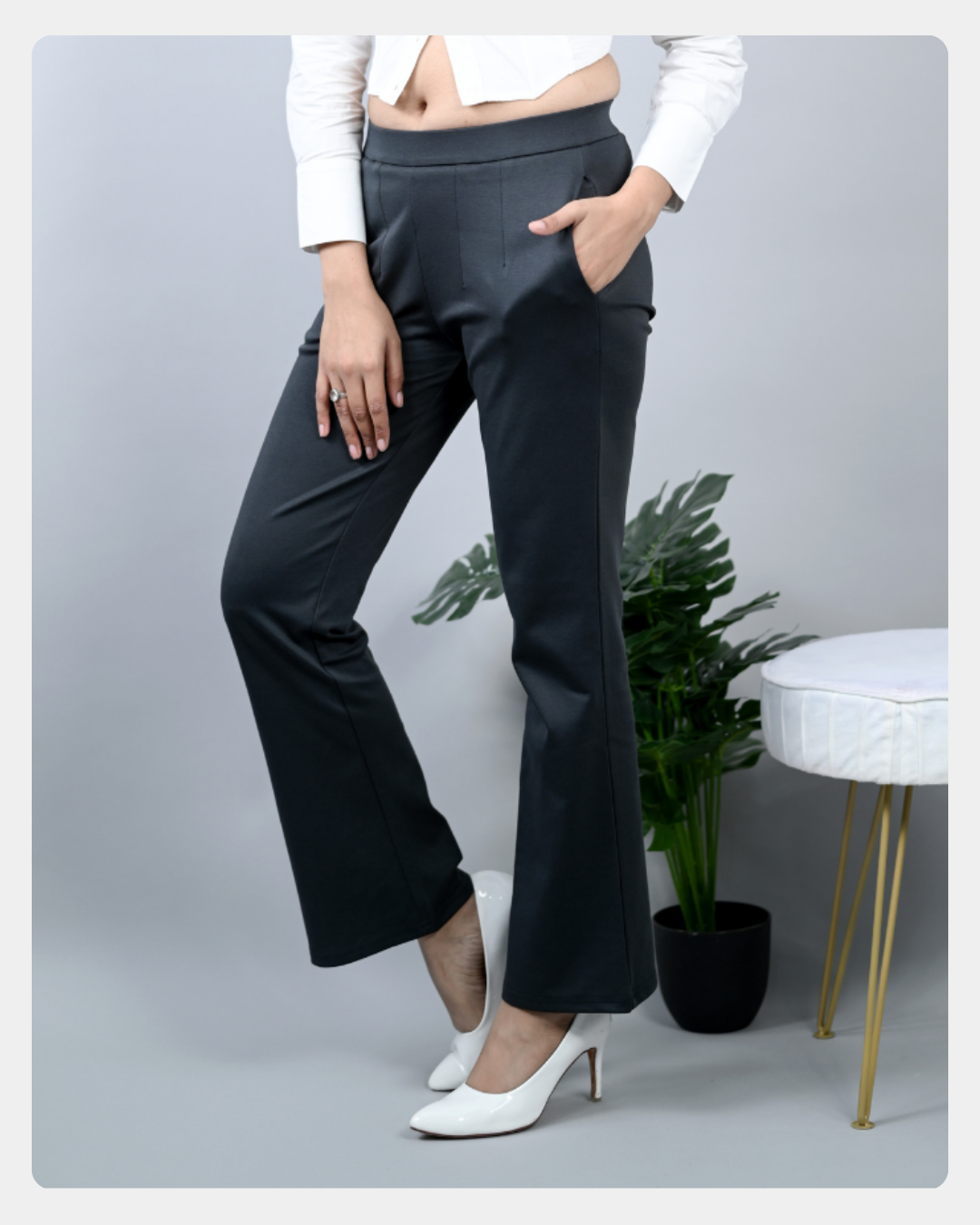 Light pink stretchable biowash cotton bootcut flare pants with superior elastic belt.