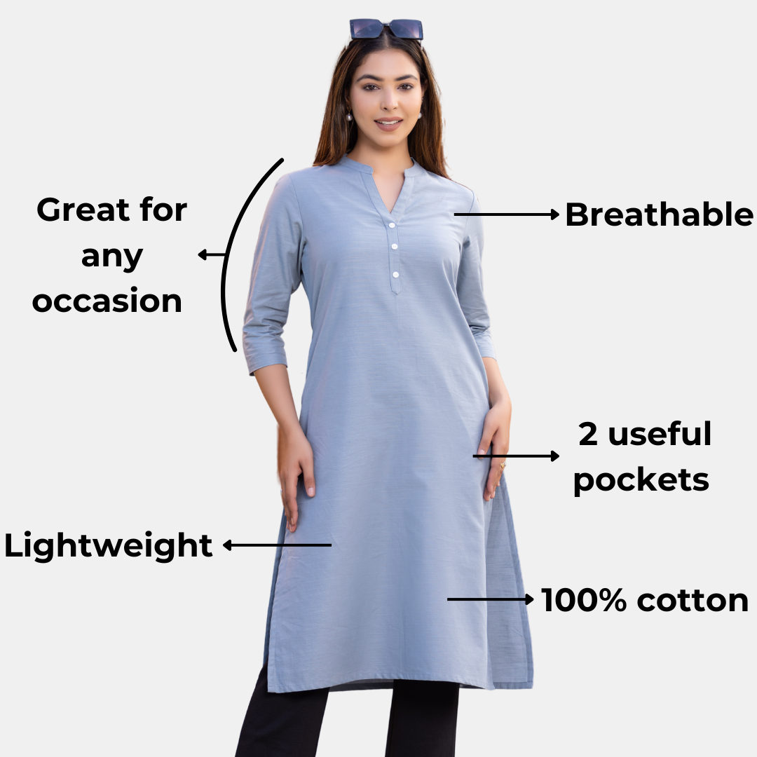 The lightweight and breathable material of our long kurti drapes beautifully, ensuring you stay cool and comfortable throughout the day. Perfect for the warmer months or layering in cooler weather.