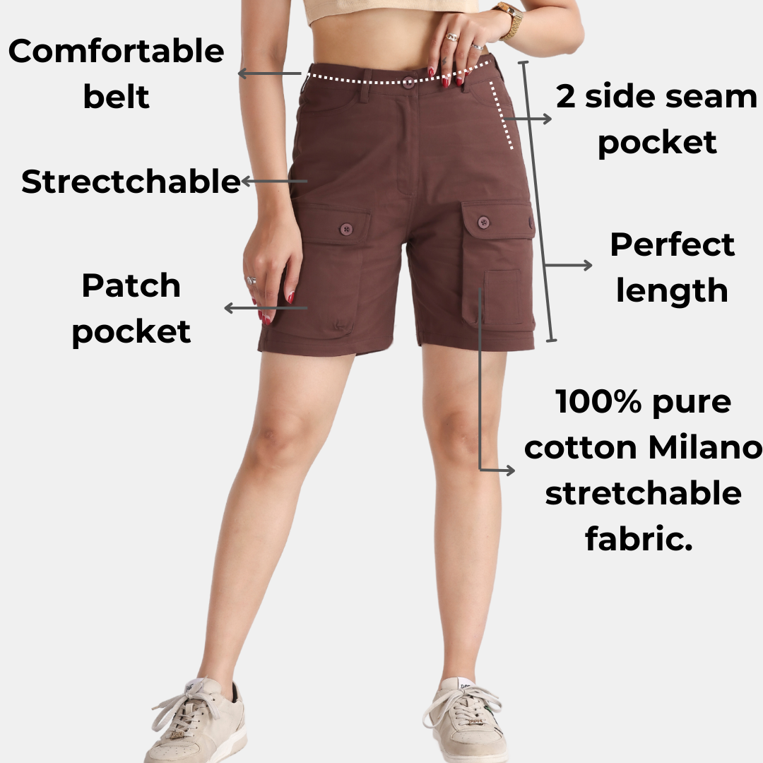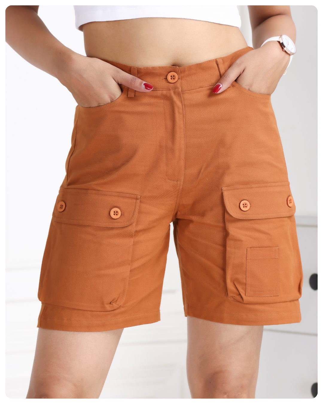 Rust travel shorts for women by Mlada - Where style meets comforts! High-quality, trendy, and available in all sizes with free delivery and no cost COD. Elevate your wardrobe with these timeless, fancy women's travel shorts. Crafted in-house with ethical practices, these travel shorts embody our commitment to quality, comfort, and enduring style. Join us in redefining fashion with a purpose. We also have generic women pants and plus size women pants too.