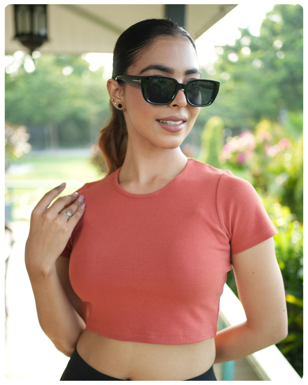 Salmon Pink Rib Crop T Shirt [ 100% USA HQ Cotton, 280 GSM non transparent fabric ]