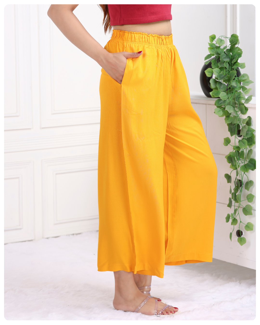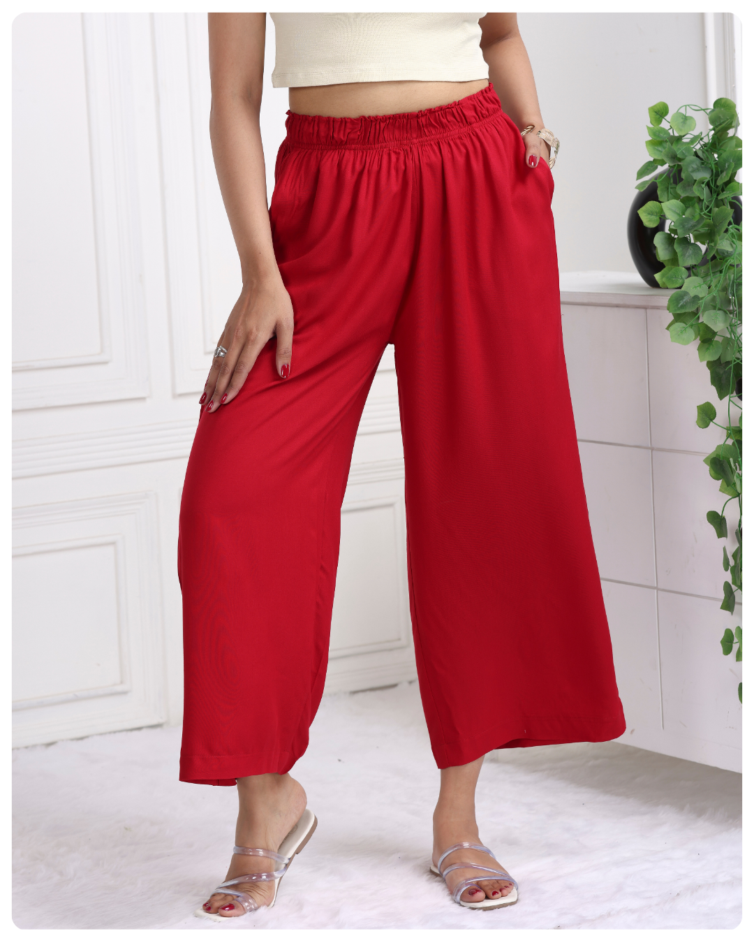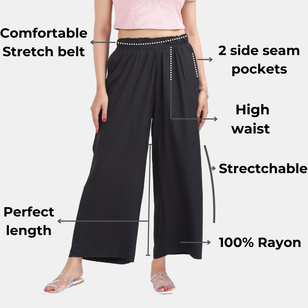 Crafted from premium 100 % rayon, these palazzo offers unparalleled comfort and a luxurious feel against your skin.